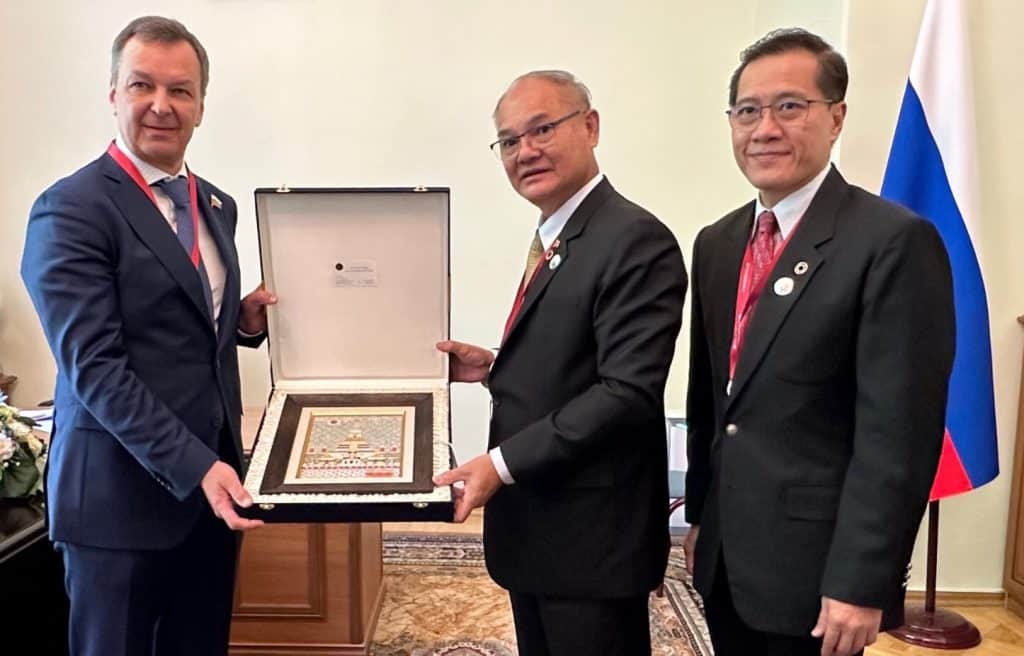 วันถัดมา นายอังเดร ยัตสกิน (Hon. Mr. Andrei Yatskin) รองประธานสภารัสเซีย ให้การต้อนรับและหารือทวิภาคีกับพลเอก สิงห์ศึก สิงห์ไพร รองประธานวุฒิสภา คนที่หนึ่ง โดยแสดงความขอบคุณฝ่ายไทยที่เดินทางมาเข้าร่วมการประชุม และเอ่ยว่าการนำเสนอในเวทีอภิปรายของผู้แทนสภาไทยได้ถูกกล่าวขวัญกันจนเข้าถึงหูท่าน…อิอิ…