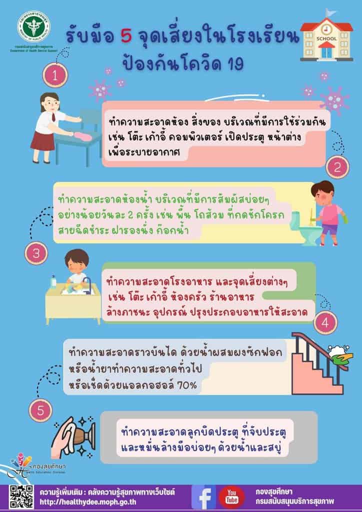สธ.เผย 10 จุดสัมผัส เสี่ยงโควิด 19 เมื่อนักเรียนไปโรงเรียน