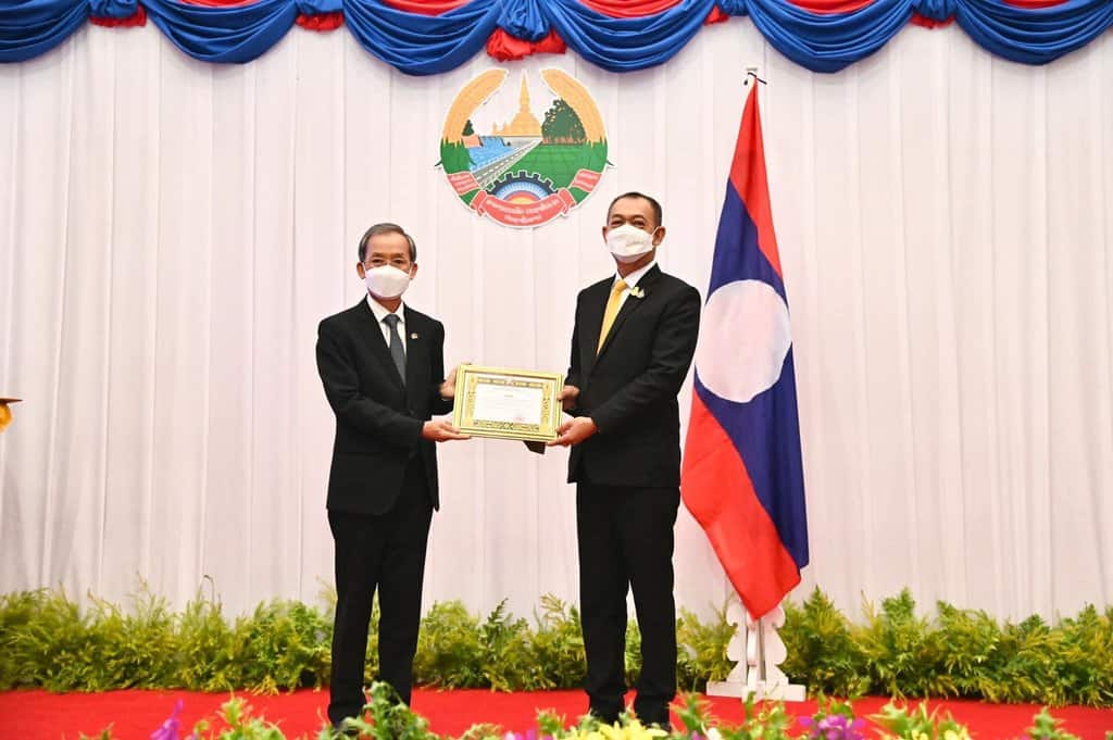 รัฐบาลลาวมอบ”ประกาศเกียรติคุณสูงย้องยอ”แด่”ดร.เฉลิมชัย ศรีอ่อน รัฐมนตรีเกษตรฯ.ในวาระ70ปีความสัมพันธ์ลาว-ไทย