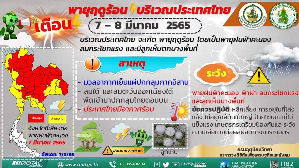 กรมอุตุฯเตือน”พายุฤดูร้อนบริเวณประเทศไทย (มีผลกระทบถึงวันที่ 8 มี.ค. )”