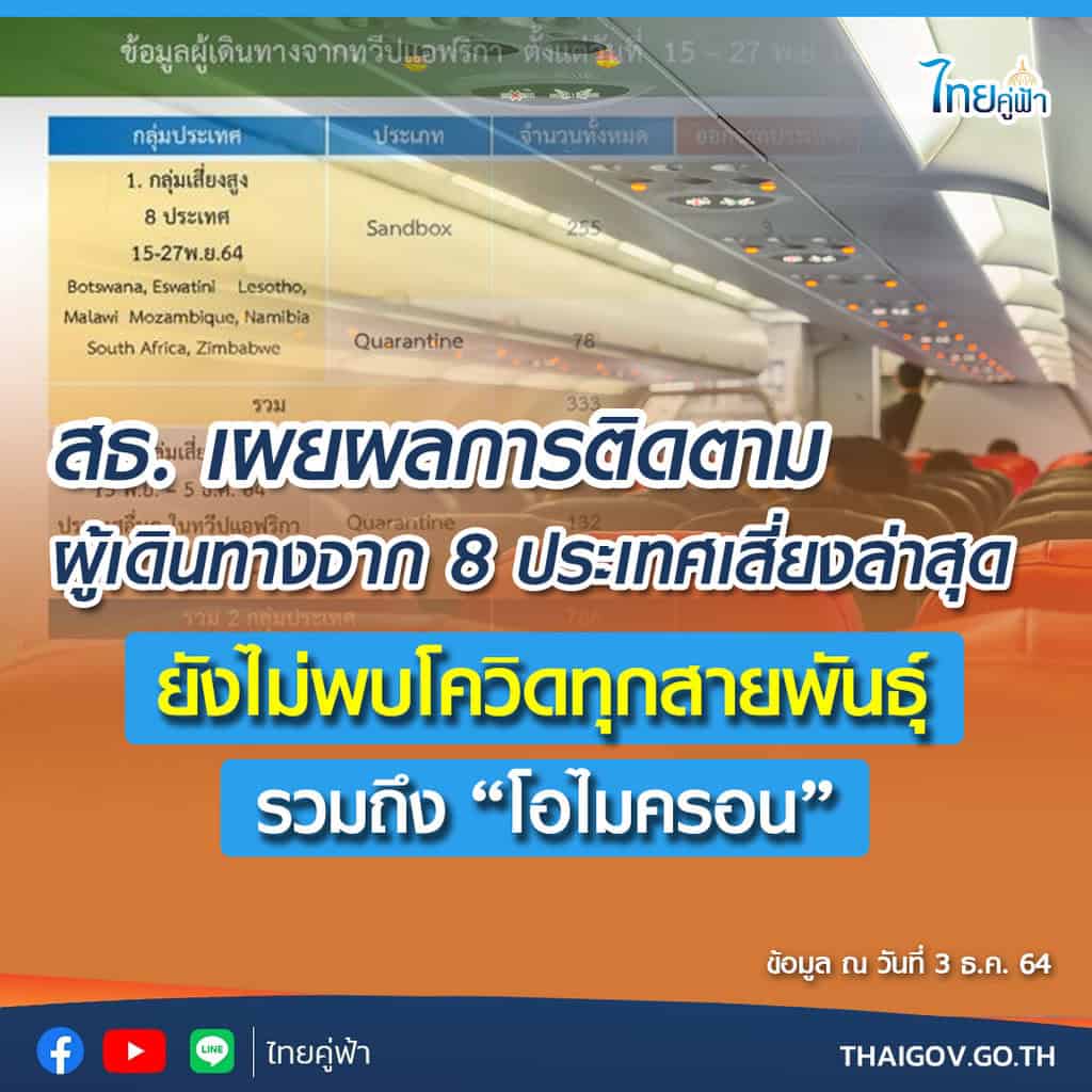 สธ. เผยผลการติดตามผู้เดินทางจาก 8 ประเทศเสี่ยงล่าสุด ยังไม่พบโควิดทุกสายพันธุ์ รวมถึง “โอไมครอน”