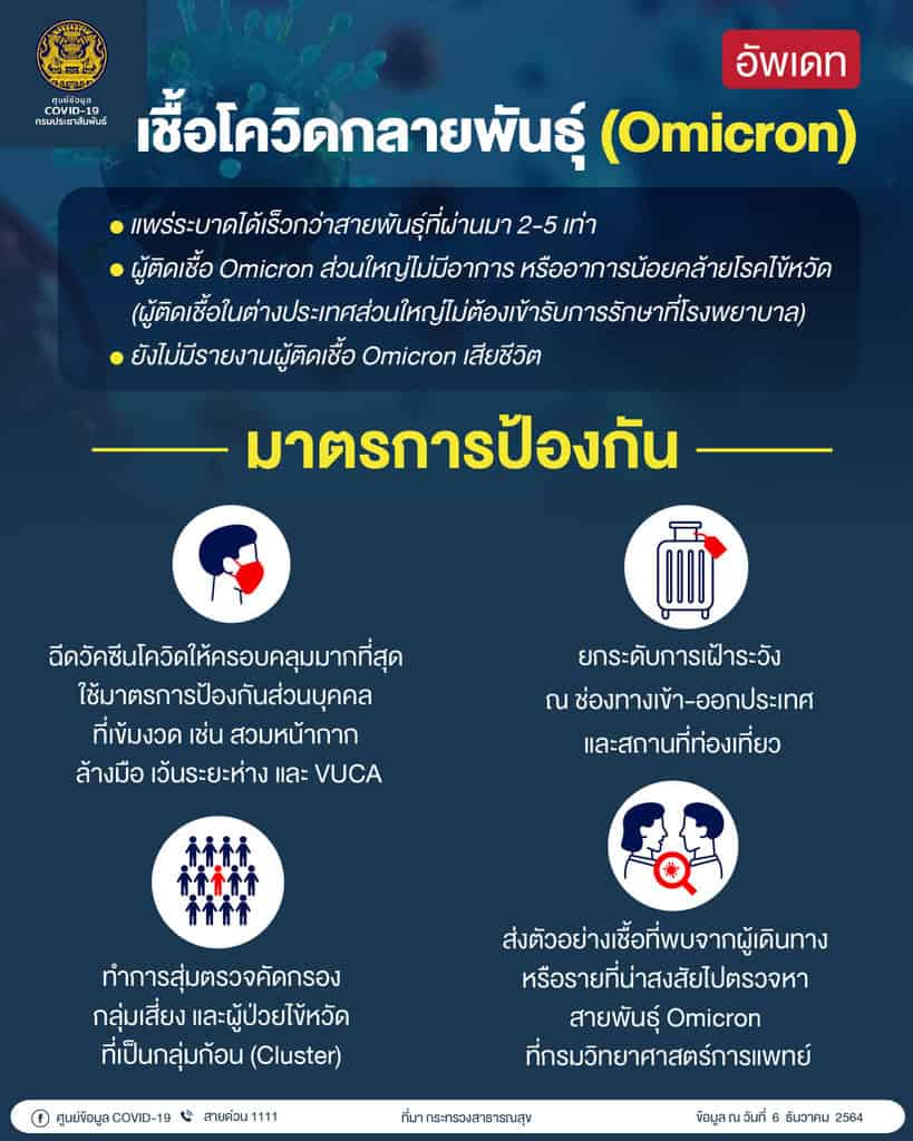 อธิบดีกรมการแพทย์วอนสังคมอย่าตื่นตระหนกพบเชื้อกลายพันธุ์โอไมครอนรายแรก พร้อมสั่งเพิ่มการตรวจและคุมเข้มชายแดนใต้หลังมาเลย์พบเชื้อกลายพันธุ์โอไมครอน