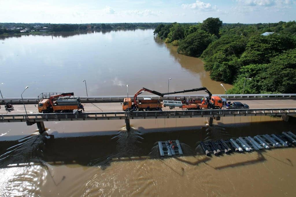 กรมชลประทานเร่งระบายน้ำในแม่น้ำมูลลงโขง รอรับน้ำเหนือ สามารถซ่อมทำนบดินไซด์งานก่อสร้างอาคารระบายน้ำอ่างฯลำเชียงไกร(ตอนล่าง)เสร็จแล้ว