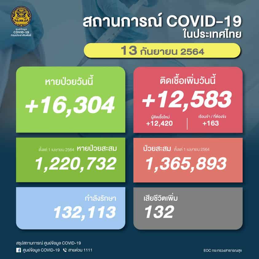 หมอยง ชี้ “ผู้ที่ได้รับวัคซีนเชื้อตาย (Sinovac) ครบ 2 เข็ม หากติดเชื้อโควิด ภูมิต้านทานจะสูงขึ้น ยอดติดเชื้อวันนี้ 12,583 ราย เสียชีวิต 132 ราย