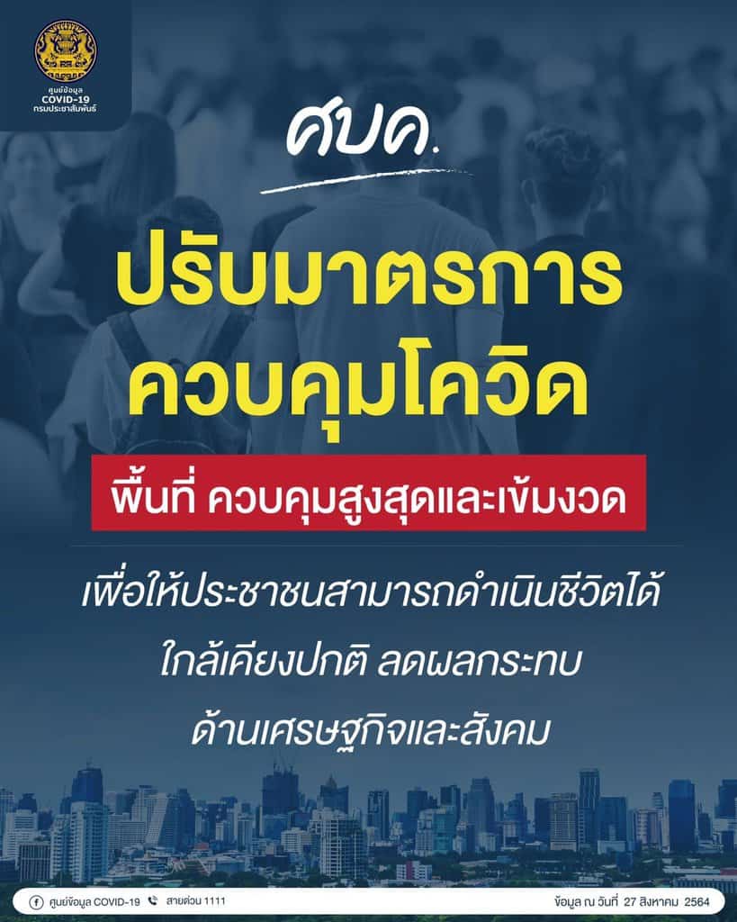 ศบค. ปลดล็อกให้นั่งกินในร้านเปิดโล่งได้ 75%และร้านอาหารปรับอากาศ 50% เริ่มนำร่อง 1 ก.ย.พื้นที่ที่มีความพร้อม ประกาศยกระดับการวิจัยวัคซีนโควิด-19 ไทยเป็นยุทธศาสตร์