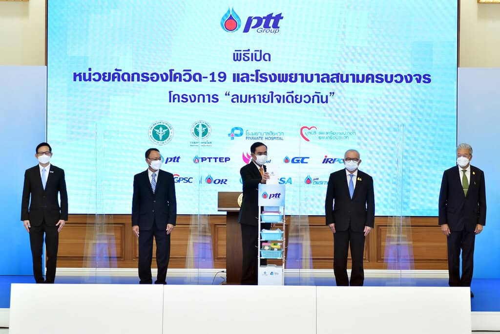 นายกรัฐมนตรีเปิดหน่วยคัดกรองผู้ป่วย COVID – 19 และโรงพยาบาลสนามครบวงจร (End-to-End) กลุ่ม ปตท. ในโครงการ”ลมหายใจเดียวกัน” ถือเป็นต้นแบบความร่วมมือรัฐ-เอกชน