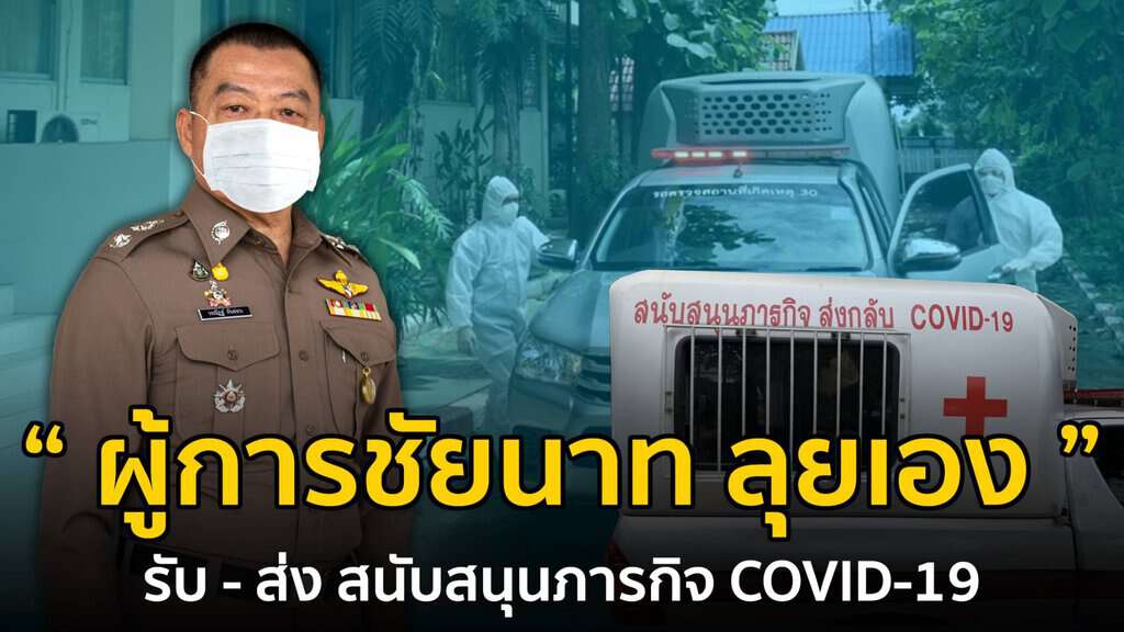 ผู้การชัยนาทนำทีมตำรวจขนย้ายผู้ติดเชื้อโรคไวรัสโคโรนา 2019 (โควิด-19) กลับคืนสู่ครอบครัว