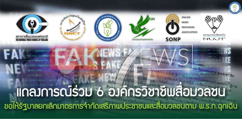 6 องค์กรวิชาชีพสื่อมวลชนเรียกร้องนายกรัฐมนตรียกเลิกมาตรการจำกัดเสรีภาพประชาชน สื่อมวลชน