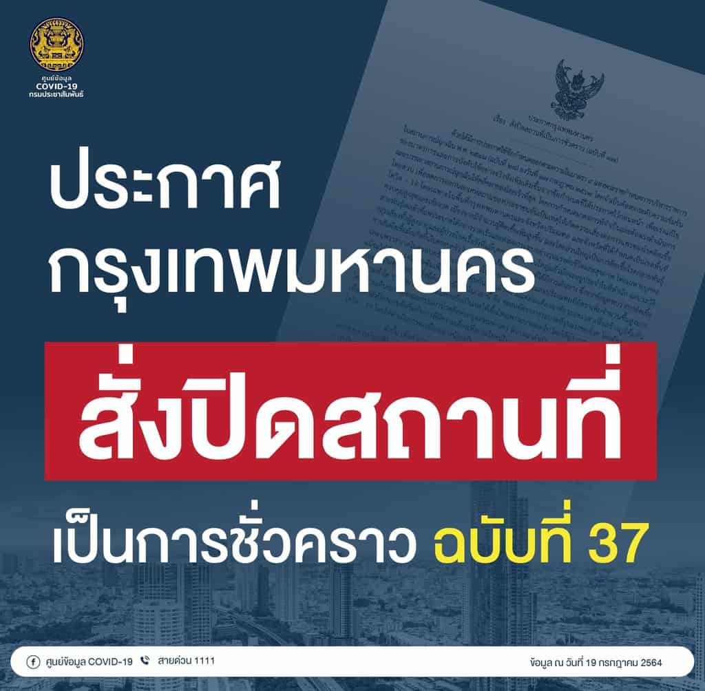 กทม. ประกาศปิดสถานที่เป็นการชั่วคราวยกระดับความเข้มข้นของมาตรการและการบังคับใช้อย่างจริงจังเพิ่มเติมขึ้น ตามมติ ศบค.