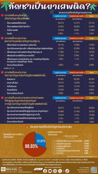 ”นิด้าโพล“ เผย ปชช.เห็นด้วยนำกัญชากลับเป็นยาเสพติด ชี้รัฐบาลไม่ควรจ่ายค่าชดเชย