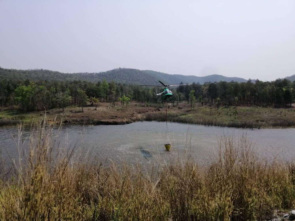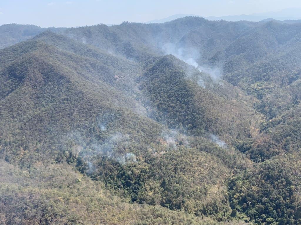 เชียงใหม่ เกิดไฟป่าต่อเนื่อง ฮ.ฝนหลวงช่วยทิ้งน้ำดับไฟป่าอ.สันทราย หลังพบกลุ่มควัน 4 จุดในเขตตำบลแม่แฝก