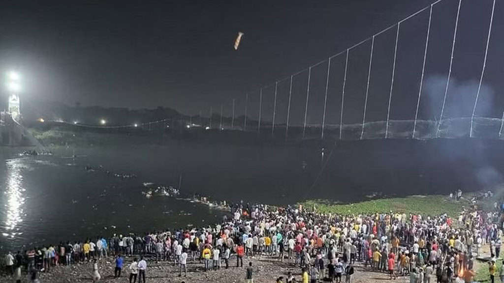 โลกสลดซ้ำ ! สะพานแขวนในอินเดียถล่ม มีผู้เสียชีวิตแล้ว 130 ราย สูญหายกว่า 100 คน