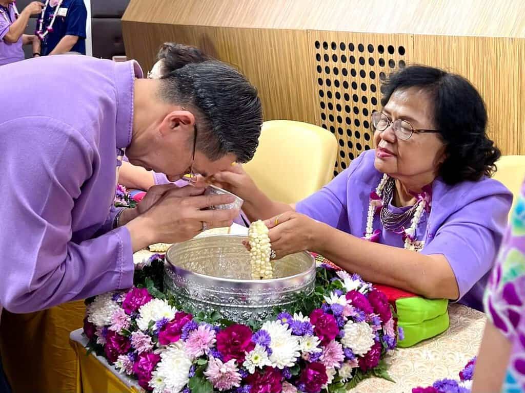 สมาคมนักศึกษาเก่ามช.กทม.จัดพิธีรดน้ำดำหัวคณาจารย์อาวุโส “ลูกช้างร่วมใจ๋ สูมาคารวะ”