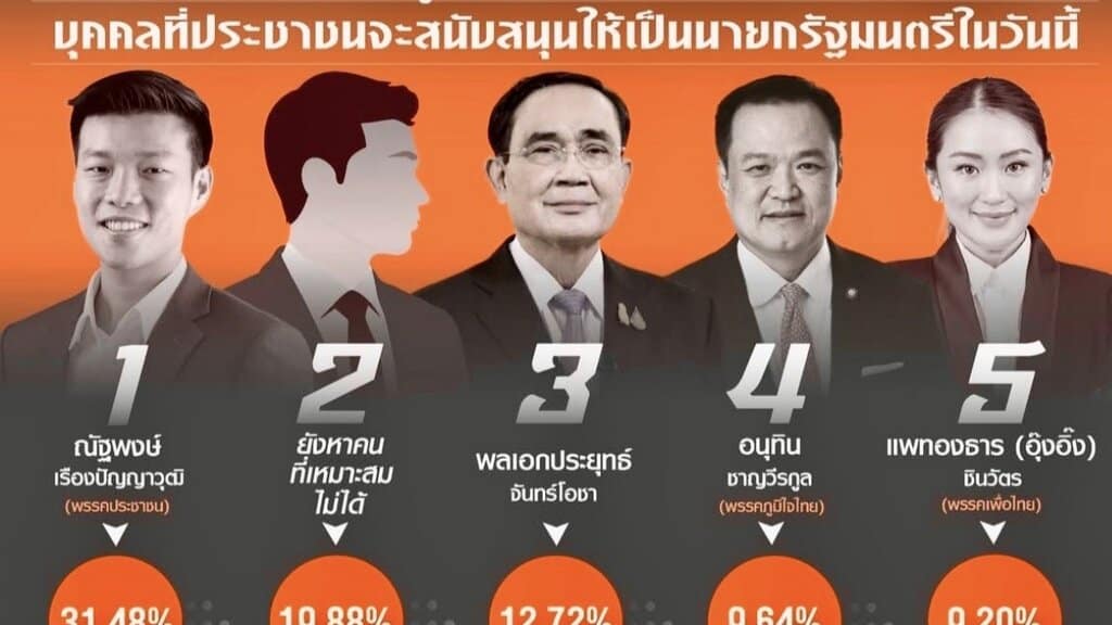 “นิด้าโพล” ชี้การเมืองไตรมาส2 “เท้ง–ปชน.” คะแนนนำโด่ง “อุ๊งอิ๊งค์-พท.” ทิ้งดิ่ง