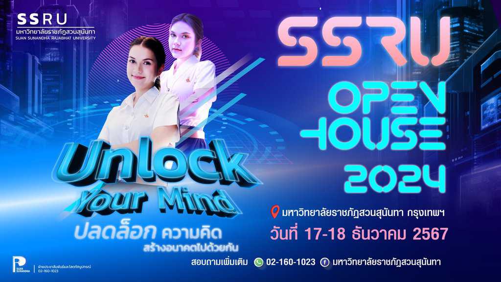 SSRU Open House 2024 – 🌟 Unlock Your Mind 🌟“ปลดล็อกความคิด สร้างอนาคตไปด้วยกัน”📅 วันที่ 17 – 18 ธันวาคม 2567