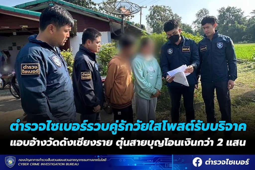 ตำรวจไซเบอร์รวบคู่รักวัยใสโพสต์รับบริจาคแอบอ้างวัดดังเชียงรายตุ๋นสายบุญโอนเงินกว่า 2 แสน
