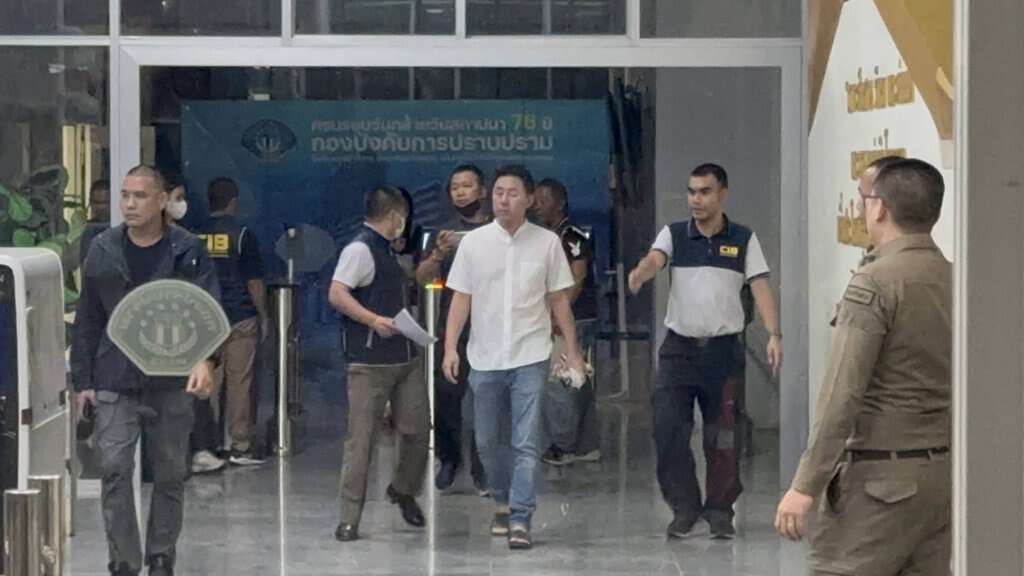 “ทนายตั้ม“และภรรยา เดินก้มหน้าเข้าห้องขัง หลังเจ้าหน้าที่สอบนาน 11 ชั่วโมง