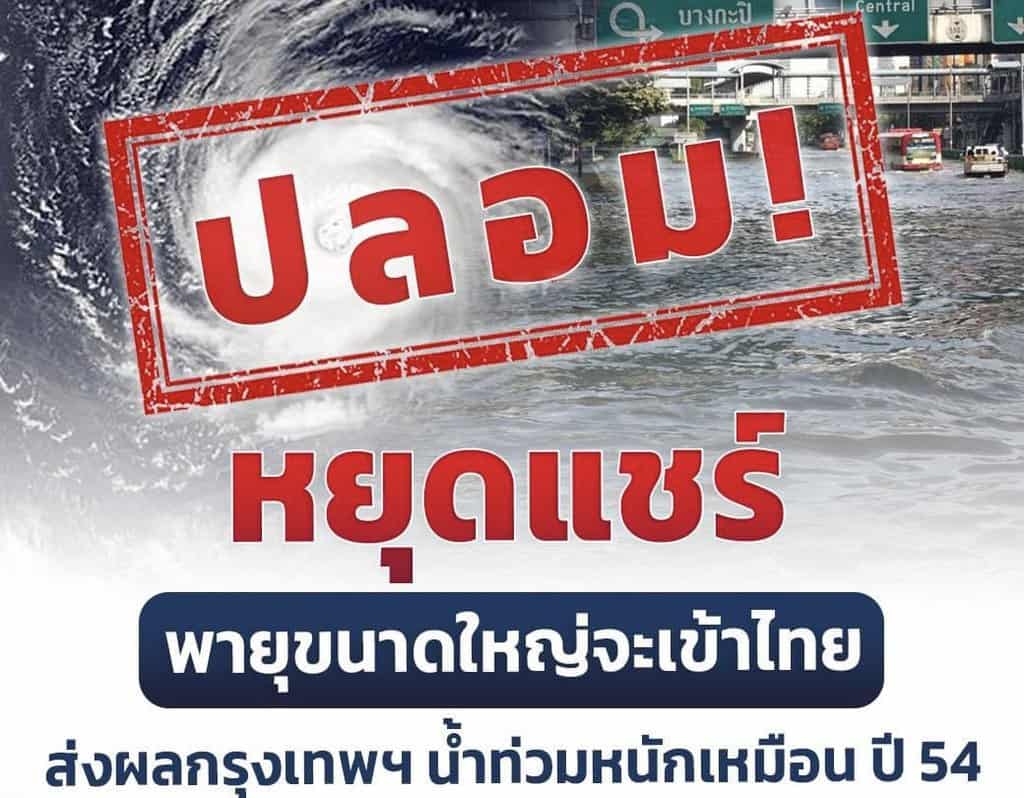 ปลอม! หยุดแชร์ พายุขนาดใหญ่จะเข้าไทย ส่งผลกรุงเทพฯ น้ำท่วมหนักเหมือน ปี 54