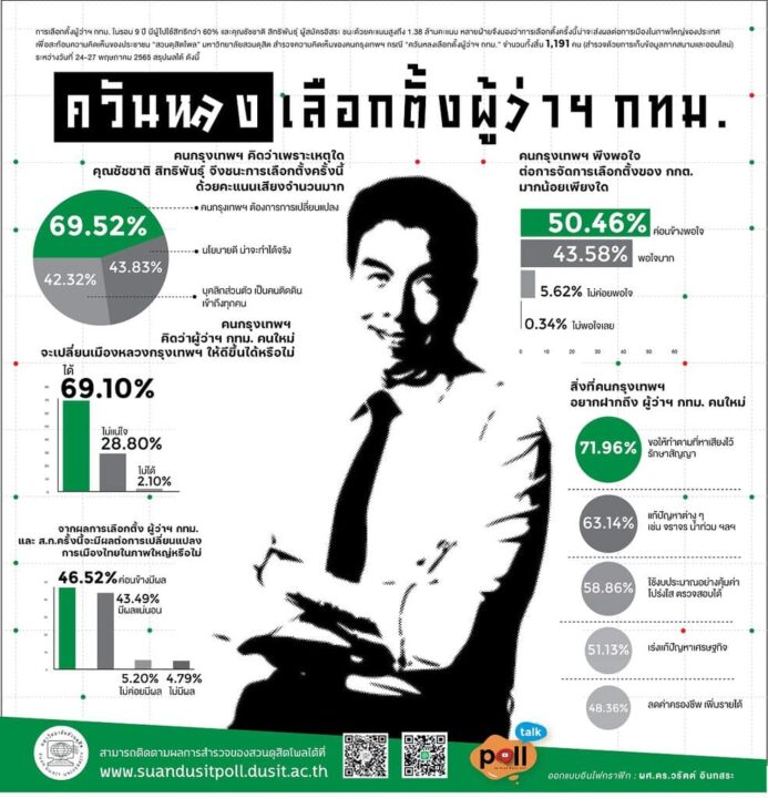 สวนดุสิตโพลชี้คนกรุงเทพฯ 70% เชื่อว่า “ชัชชาติ”จะเปลี่ยนกรุงเทพฯได้
