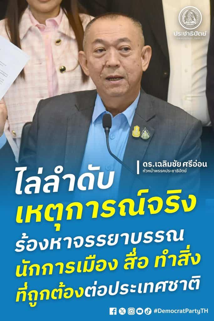 “เฉลิมชัย” ไล่ลำดับเหตุการณ์จริง ร้องหาจรรยาบรรณนักการเมือง สื่อ ทำสิ่งที่ถูกต้องต่อประเทศชาติ
