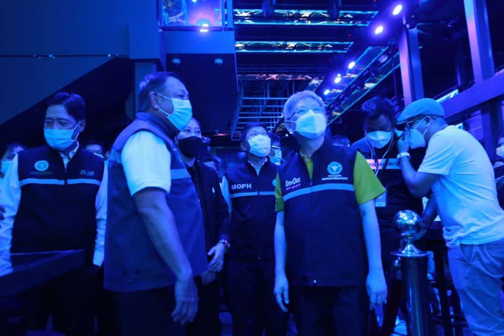 นายแพทย์เกียรติภูมิ วงศ์รจิต ปลัดกระทรวงสาธารณสุข พร้อมด้วยตัวแทนหน่วยงานที่เกี่ยวข้อง เข้าตรวจสอบสถานบันเทิง ผับ บาร์คาราโอเกะ หรือสถานที่อื่นที่มีลักษณะคล้ายกัน ที่เปิดให้บริการในวันนี้ เป็นวันแรก ย่านเอกมัย