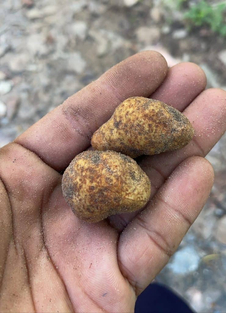 นายวิชัย เป็งเรือน ผู้ใหญ่บ้าน บ้านต้นผึ้ง หมู่ 7 ตำบลแม่โป่ง อำเภอดอยสะเก็ด จังหวัดเชียงใหม่ เผยว่าเมื่อวันที่ 9 กรกฎาคม 2565 ที่ผ่านมาได้มูลนิธิแม่ฟ้าหลวง สำนักจัดการทรัพยากรป่าไม้ ที่ 1 (เชียงใหม่) อำเภอดอยสะเก็ด กำนันผู้ใหญ่บ้าน 8 หมู่บ้าน และชาวบ้าน เข้ามาเพื่อแก้ไขปัญหาการเผาหาของป่า ได้นำร่องในพื้นที่ป่าชุมชนบ้านต้นผึ้ง ที่เข้าไปกำหนดพื้นที่ นำเห็ดป่าชนิดต่างๆ ลงไปเพาะ ในรากไม้ต้นตึง บังเอิญพบทรัฟเฟิลสีทอง 1 ก้อน กลับมาพบเจออีกครั้งที่รากต้นตึงดังกล่าว เห็ดที่พบมีเนื้อแข็งไม่นิ่มเหม็น เห็ดที่พบเห็นมีกลิ่นเหมือนเห็ด