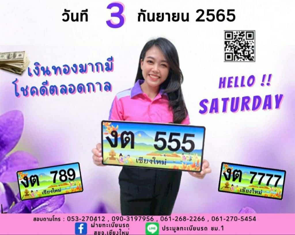 กรมการขนส่ งทางบกได้นำหมายเลขทะเบียนรถซึ่งเป็นที่ต้องการหรือเป็นที่นิยมของประชาชนสำหรับรถยนต์นั่งส่วนบุคคลไม่เกิน ๗ คน ออกประมูลเป็นการทั่วไปเพื่อเปิดโอกาสให้ประชาชนมีสิทธิเข้าร่วมการประมูลอย่างเสมอภาค เท่าเทียมกัน ด้วยความโปร่งใส และเป็นธรรม โดยรายได้ทั้งหมดนำเข้ากองทุนเพื่อความปลอดภัยในการใช้รถใช้ถนน (กปถ) เพื่อนำไปสนับสนุนโครงการที่สร้างความปลอดภัยในการใช้รถใช้ถนนเช่น โครงการนักเรียนรุ่นใหม่มีใบอนุญาตขับรถ โครงการรณรงค์ป้องกันและลดอุบัติเหตุทางถนนช่วงเทศกาลต่างๆโครงการสนามจราจรเยาวชนเสริมสร้างจิตสำนึกความปลอดภัย โครงการมั่นใจทั่วไทยรถใช้ GPSโครงการจัดตั้งศูนย์บริการจัดการเดินรถระบบ GPS และศูนย์ควบคุมสถานตรวจสภาพรถเอกชน เป็นต้นสำนักงานขนส่งจังหวัดเชียงใหม่ จึงขอเชิญชวนพี่น้องชาวจังหวัดเชียงใหม่ทุกท่านทั่วประเทศไม่ว่าจะอาศัยอยู่ในจังหวัดใด สนใจป้ายที่มีความหมายสื่อถึงความเป็นคนเชียงใหม่ สามารถเข้าร่วมการประมูลหมายเลขทะเบียนรถเลขสวย และร่วมทำบุญสร้างกุศลโดยการร่วมประมูลหมายเลขทะเบียนรถเลขสวยหมวดอักษร งต ลงทะเบียนได้ตั้งแต่บัดนี้เป็นต้นไป ปิดประมูลในวันเสาร์ที่ ๓ กันยายน ๒๕๖๕ประมูลทางอินเตอร์เน็ต www.tabienrod.com สอบถามรายละเอียดเพิ่มเติมได้ที่ ฝ่ายทะเบียนรถโทร. ๐๖๑ ๒๖๘ ๒๒๖๖, ๑๖๑ ๒๗๐ ๕๔๕๔ และที่หมายเลข ๑๕๘๔