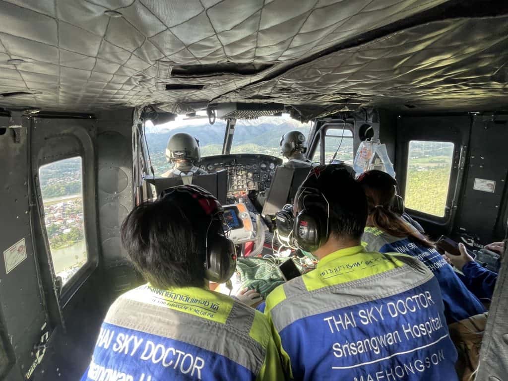 เมื่อวันที่ 31 กรกฎาคม 2565 เวลา 1630 น. กองทัพบก โดยศูนย์ปฏิบัติการกองทัพบก ได้รับการร้องขอการส่งป่วยทางอากาศยาน โดยร่วมกับ กระทรวงสาธารณสุข และสถาบันการแพทย์ฉุกเฉินแห่งชาติ (สพฉ.) ได้สั่งการให้ พันเอก สุจินต์ ทรัพย์สิน ผู้บังคับหน่วยเฉพาะกิจกรมทหารราบที่ 7 จัดอากาศยานสนับสนุนการส่งผู้ป่วยฉุกเฉิน จึงมอบหมายให้ ชุดปฏิบัติการบินทหารบก หน่วยเฉพาะกิจกรมทหารราบที่ 7 จัดอากาศยาน ฮ.ท. 212 จำนวน 1 เครื่อง ร่วมกับ ทีมแพทย์ฉุกเฉิน โรงพยาบาลศรีสังวาลย์ เพื่อทำการช่วยเหลือเคลื่อนย้ายผู้ป่วยฉุกเฉิน จำนวน 1 ราย คือ นายจ๋อม ไม่มีชื่อสกุล อายุ 25 ปี อยู่บ้านเลขที่ 0/89 หมู่ที่ 3 ตำบลผาบ่อง อำเภอเมือง จังหวัดแม่ฮ่องสอน ซึ่งเกิดภาวะเส้นเลือดหัวใจอุดตัน และหัวใจหยุดเต้น โดยอากาศยานได้ทำการเคลื่อนย้ายผู้ป่วยจาก สนาม ฮ. หน่วยเฉพาะกิจกรมทหารราบที่ 7 อำเภอเมือง จังหวัดแม่ฮ่องสอน ถึงสนาม ฮ. ชั่วคราว ค่ายกองพลทหารราบที่ 7 ตำบลดอนแก้ว อำเภอแม่ริม จังหวัดเชียงใหม่ เพื่อส่งตัวเข้ารับการรักษาพยาบาล ณ โรงพยาบาลนครพิงค์ อำเภอแม่ริม จังหวัดเชียงใหม่ ใช้เวลาในการเดินทางประมาณ 45 นาที ซึ่งการช่วยเหลือดังกล่าว กองทัพบก ได้ทำข้อตกลงของกองทัพบก และสำนักงานตำรวจแห่งชาติ MOU ร่วมกับสถาบันการแพทย์ฉุกเฉินแห่งชาติ ทั้งนี้เพราะการส่งผู้ป่วยเจ็บ ถือเป็นภารกิจที่สำคัญของกองทัพบก สามารถกระทำได้อย่างรวดเร็ว เป็นการช่วยเหลือชีวิตพี่น้องประชาชน และที่สำคัญ หน่วยเฉพาะกิจกรมทหารราบที่ 7 กองกำลังนเรศวร ศูนย์ปฏิบัติการกองทัพภาคที่ 3 และศูนย์ปฏิบัติการกองทัพบก พร้อมที่จะให้การช่วยเหลือประชาชนในทุกโอกาส และมีความพร้อมปฏิบัติภารกิจตลอด 24 ชั่วโมง
