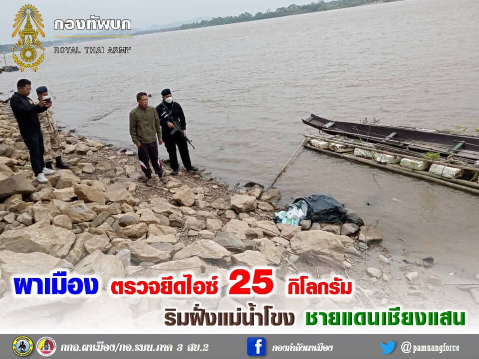 ผาเมือง ตรวจยึดไอซ์ 25 กิโลกรัม ริมฝั่งแม่น้ำโขง ชายแดนเชียงแสน