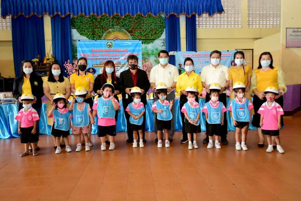 สำหรับสวมใส่เพื่อความปลอดภัยในการใช้รถใช้ถนน ซึ่งสอดคล้องกับโครงการ “หนูน้อยขับขี่ปลอดภัย” ที่ศูนย์อบรมเด็กก่อนเกณฑ์วัดกลางบางแก้วจัดขึ้นเพื่อรณรงค์ให้เด็กนักเรียนสวมใส่หมวกนิรภัย เพื่อลดอุบัติเหตุที่จะเกิดกับเด็กบนท้องถนน และให้เด็ก ๆ ระมัดระวังในการเดินทางบนท้องถนน พร้อมกันนี้ ได้มอบหน้ากากอนามัย เจลแอลกอฮอล์ล้างมือ สายคล้องหน้ากาก และสิ่งของอื่น ๆ ให้แก่เด็กนักเรียน นอกจากนี้ ได้มีการบรรยายให้ความรู้เกี่ยวกับความสำคัญของการสวมหมวกนิรภัยในการใช้รถใช้ถนน โดย นายกษิดิศ ขันธรัตน์ ผู้จัดการสำนักงานเครือข่ายลดอุบัติเหตุ ภายใต้ สสส. ด้วย