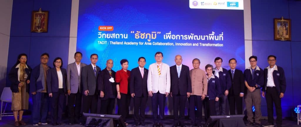 ดร.กิตติ สัจจาวัฒนา ผู้อำนวยการ บพท. กล่าวชี้แจงเพิ่มเติมว่า วิทยสถาน “ธัชภูมิ” เพื่อการพัฒนาพื้นที่ ซึ่งเป็นหน่วยงานภายใต้ บพท. มีบทบาทหน้าที่รับผิดชอบในการประมวลและสังเคราะห์องค์ความรู้จากงานวิจัย นวัตกรรม และภูมิปัญญาจากพื้นที่ ครอบคลุมทุกมิติของงานพัฒนาพื้นที่ ได้แก่ ด้านขจัดความยากจนและสร้างโอกาสทางสังคม ด้านเศรษฐกิจฐานราก จากฐานทุนทรัพยากรพื้นถิ่น ด้านการพัฒนาทุนทางวัฒนธรรม ด้านการพัฒนาเมืองเพื่อกระจายศูนย์กลางความเจริญ และด้านการเสริมสร้างความเข้มแข็งของท้องถิ่นและชุมชน ซึ่ง บพท. ได้ทำร่วมกับสถาบันอุดมศึกษา ตลอดจนกลไกภาคีเครือข่ายในพื้นที่ ดำเนินกระบวนการพัฒนาให้เกิดโครงสร้างพื้นฐานด้านความรู้ระดับพื้นที่ (Knowledge Infrastructure) รวมทั้งทำให้เกิดชุดความรู้ที่สามารถส่งออกสู่ระดับสากล และผลักดันเป็นข้อเสนอเชิงนโยบาย เพื่อนำไปสู่การพัฒนาพื้นที่และลดช่องว่างความเหลื่อมล้ำ โดยมี ดร.สีลาภรณ์ บัวสาย ทำหน้าที่กำกับดูแลการดำเนินงานในภาพรวม ในฐานะประธานคณะอนุกรรมการที่ปรึกษาการขับเคลื่อนวิทยสถาน “ธัชภูมิ” เพื่อการพัฒนาพื้นที่