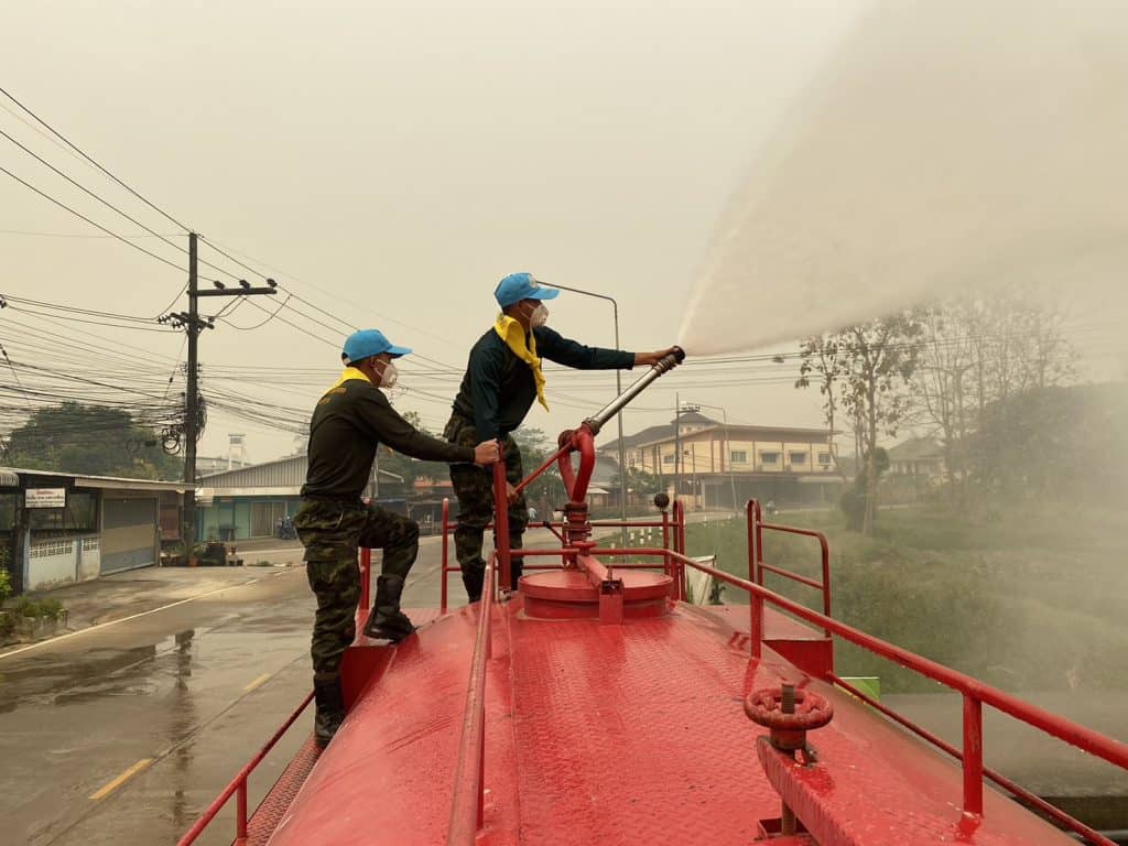 ผาเมือง ร่วมใจ นำรถบรรทุกน้ำพ่นละอองน้ำ ลดฝุ่น ลดหมอกควันในพื้นที่ชายแดนเชียงใหม่และเชียงราย