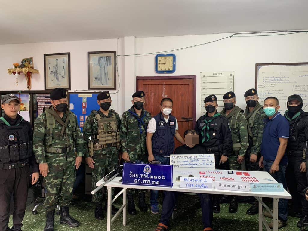 กองร้อยทหารพรานที่ 3106 หน่วยเฉพาะกิจกรมทหารพรานที่ 31 กองกำลังผาเมือง จัดกำลังพล ร่วมกับกองบังคับการควบคุม ศูนย์อำนวยการป้องกันและปราบปรามยาเสพติดชายแดนภาคเหนือที่ 4, กองบังคับการควบคุมสกัดกั้นและปราบปรามยาเสพติดที่ 4 และ สภ.ภูซาง ปฏิบัติภารกิจตั้งจุดตรวจเพื่อป้องกันและสกัดกั้นการกระทำผิดกฎหมายตาม พ.ร.บ.ประมวลกฎหมายยาเสพติด บริเวณ บ้านหัวขัว หมู่ 5 ต.สบบง อ.ภูซาง จ.พะเยา ได้ตรวจพบรถจักรยานยนต์ไม่ติดแผ่นป้ายทะเบียน จึงขอทำการตรวจค้น ผลการตรวจค้นพบยาเสพติดให้โทษประเภท 1 (ยาบ้า) จำนวน 876 เม็ด, อาวุธปืนอัดลม (ไทยประดิษฐ์) จำนวน 1 กระบอก, โม่ปืนอัดลม จำนวน 1 โม่, กระสุนปืนอัดลม จำนวน 3 กล่อง, กระสุนปืน ขนาด .380 นิ้ว จำนวน 3 นัด, กระสุนปืนขนาด .22 นิ้ว จำนวน 30 นัด, ซองกระสุนขนาด .22 นิ้ว จำนวน 1 ซอง และปลอกเสื้อกันกระสุน จำนวน 1 ตัว หน่วยจึงได้ทำการจับกุมผู้ต้องหาพร้อมของกลางส่งให้ สภ.ภูซาง ดำเนินคดีตามกฎหมายต่อไป