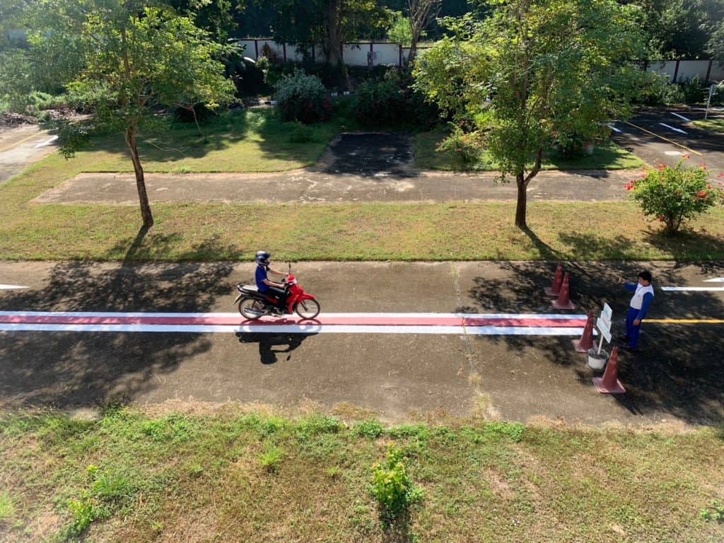 รวมทั้งการสาธิตการขับขี่รถจักรยานยนต์ให้มีความปลอดภัย(ภาคปฏิบัติ) ได้สื่อประชาสัมพันธ์ให้ทราบว่าโครงการดังกล่าวได้รับการสนับสนุนจากกองทุนเพื่อความปลอดภัยในการใช้รถใช้ถนน (กปถ.) มีนักเรียนกลุ่มเป้าหมาย แบ่งเป็น 10 รุ่น อายุระหว่าง 15-18 ปี เข้ารับการอบรมรุ่นละจำนวน 50 คน โดยจะใช้วันหยุดในการเปิดการอบรม