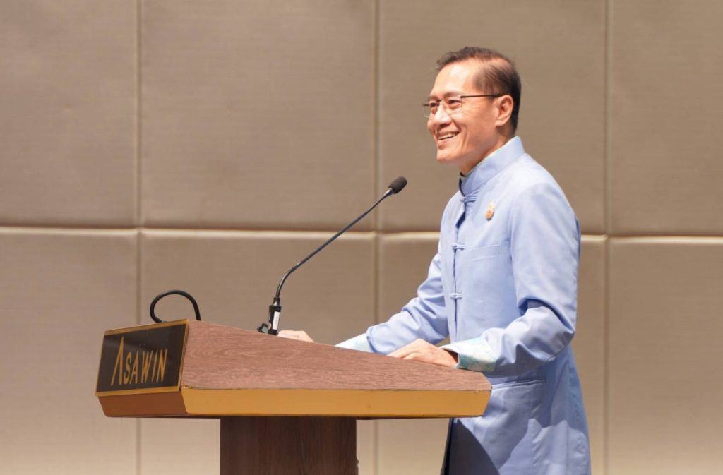 นายวีระศักดิ์ โควสุรัตน์ อดีตรัฐมนตรีว่าการกระทรวงการท่องเที่ยวและกีฬากล่าวปาฐกถาพิเศษเรื่อง “โอกาสและความท้าทายของการท่องเที่ยวและเศรษฐกิจสร้างสรรค์ของไทยในเวทีโลก” ในการสัมมนาจัดโดยบพข. ” 5 ปีแห่งการวิจัยเพื่อขับเคลื่อน รับมือ และพลิกโฉมการท่องเที่ยวและเศรษฐกิจสร้างสรรค์ไทย” ที่โรงแรมอัศวิน ถนนวิภาวดีรังสิต กรุงเทพ
