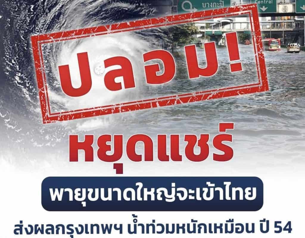 ปลอม! หยุดแชร์ พายุขนาดใหญ่จะเข้าไทย ส่งผลกรุงเทพฯ น้ำท่วมหนักเหมือน ปี 54
