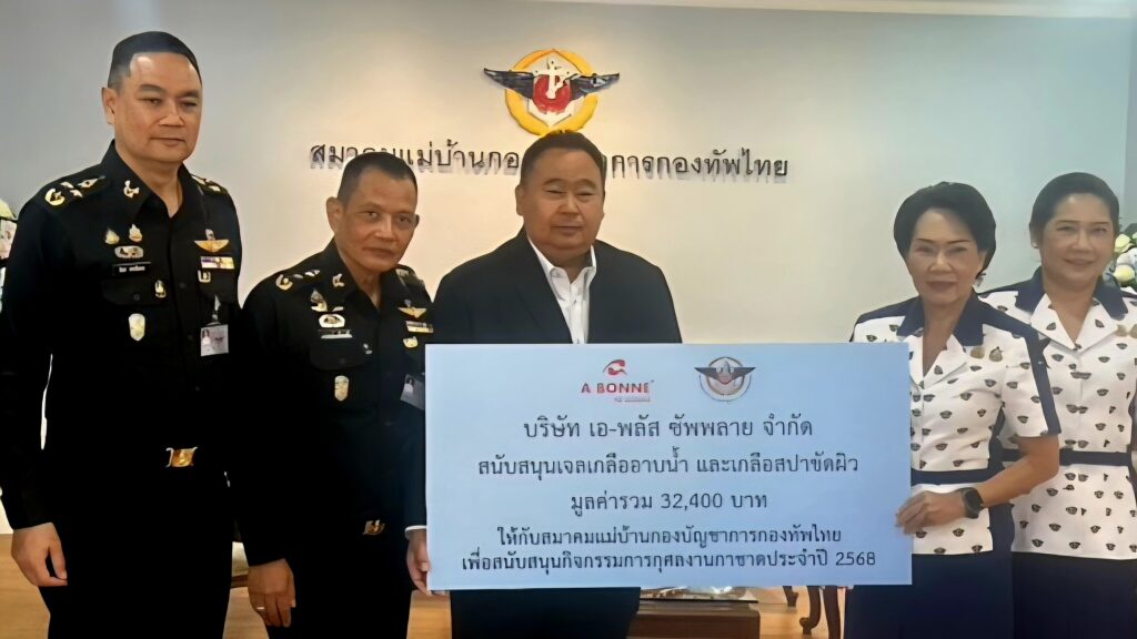“สุเมธ งามเจริญ” บิ๊กบอส เอ-พลัส ซับพลาย (วปอ.63) นำทัพมอบผลิตภัณฑ์หนุนสมาคมแม่บ้านกองบัญชาการกองทัพไทย ลุยงานกาชาดปี 68 พร้อมเป็นสะพานบุญนำข้าวสาร “สิงโตทอง” ร่วมสมทบ รวมมูลค่าเฉียดครึ่งแสน