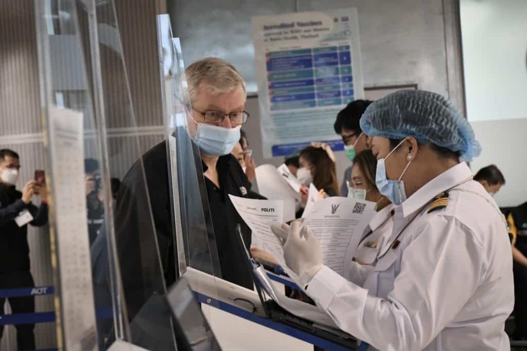ในวันนี้มีผู้ที่เดินทางเข้ามา 2,424 คน เป็นคนไทย 890 คน ต่างชาติ 1,534 คน จาก 40 เที่ยวบิน เมื่อเดินทางมาถึงทุกคนจะต้องผ่านการตรวจคัดกรองจากเจ้าหน้าที่ด่านควบคุมโรคติดต่อระหว่างประเทศ เพื่อตรวจสอบใบอนุญาตเดินทางเข้าประเทศ (COE : Certificate of Entry) หรือแสกน QR Code ระบบ Thailand Pass มีเจ้าหน้าที่ให้บริการ 10-15 คน เพื่ออำนวยความสะดวกให้กับผู้เดินทาง ใช้เวลาประมาณ 1 นาทีต่อคน จากนั้นเข้าสู่พิธีการตรวจคนเข้าเมือง และเดินทางไปยังโรงแรมที่จัดไว้เพื่อเข้ารับการตรวจด้วยวิธี RT-PCR และพักรอผลตรวจ 1 คืน หากผลเป็นลบสามารถเดินทางไปได้ทั่วประเทศ โดยนักท่องเที่ยวต้องโหลดแอปพลิเคชั่น “หมอชนะ” สำหรับติดตามตัวตลอดเวลาที่พำนักอยู่ในประเทศไทย