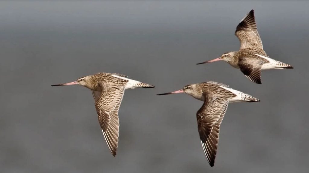 และในความยาวของการบินนี้ บางพันธุ์เคยถูกพบจากระบบจีพีเอสที่ติดที่ขานกไว้ รายงานว่านกเล็กเหล่านั้นสามารถออกบินจากถิ่นอาศัยในอลาสก้า ซึ่งใกล้ขั้วโลกเหนือ บินข้ามมหาสมุทรแปซิฟิกเฉียงลงไปจนถึงนิวซีแลนด์เฉียดขั้วโลกใต้จนได้ แม้ไม่มีที่ให้มันลงหยุดพักระหว่างทางเป็นเวลานานมากๆก็ตาม มันใช้วิธีกระพือปีกบินแล้วร่อน บินแล้วร่อนไปเรื่อยๆเพื่อถนอมพลังงาน และเมื่อไขมันถูกดึงออกมาใช้แปรเป็นพลังกระพือปีกไปจนหมด กระเพาะของมันจะเริ่มกินตัวเองเพื่อแปรเป็นพลังงานเช่นกัน