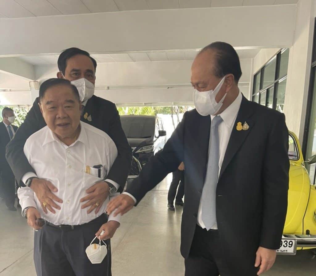 FB ศูนย์ปฏิบัติการนายกรัฐมนตรี – PMOC โพสต์ภาพพล.อ.ประยุทธ์ จันทร์โอชา นายกรัฐมนตรีสวมกอดพล.อ.ประวิตร วงษ์สุวรรณ รองนายกรัฐมนตรี หัวหน้าพรรคพลังประชารัฐ พร้อมพาดหัว มิตรภาพ 3 ป. ยาวนาน เหนียวแน่น ภายหลังการประชุมคณะกรรมการอำนวยการรักษาความมั่นคงภายในราชอาณาจักร ครั้งที่ 1/2564 ที่สโมสรทหารบก ถนนวิภาวดี พล.อ.ประยุทธ์ พล.อ.ประวิตร และ พล.อ.อนุพงษ์ เผ่าจินดา รัฐมนตรีว่าการกระทรวงมหาดไทย ได้รับประทานอาหารร่วมกัน ที่มูลนิธิอนุรักษ์ป่ารอยต่อ 5 จังหวัด โดย พล.อ.ประยุทธ์ พูดคุยและหยอกล้อกับ พล.อ.ประวิตร อย่างเป็นกันเอง