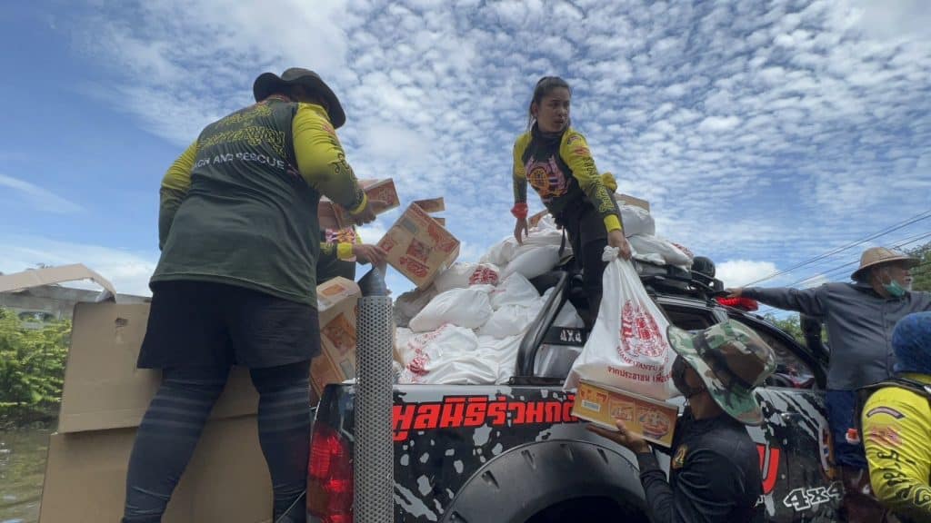 มูลนิธิร่วมกตัญญู โดย ดร.รัตนา สมสกุลรุ่งเรือง ประธานมูลนิธิฯ ได้สั่งการให้ นายสมศักดิ์ ปาลวัฒน์ ผู้จัดการมูลนิธิฯเร่งรัดจัดทีมกู้ภัยร่วมกตัญญู นำเรือท้องแบน และ จัดเตรียมสิ่งของช่วยเหลือผู้ประสบภัย ถุงยังชีพ-น้ำดื่ม